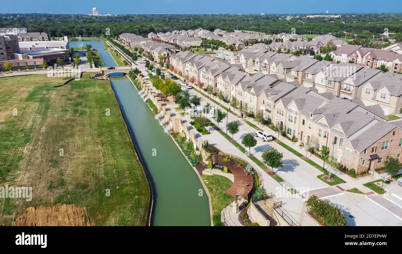 Aerial View Riverside Brand New Two Story Townhouses In Downtown Flower Mound Texas Us Stock Photo Alamy